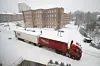I går ettermiddag leverte avbildet modulvogntog – for øvrig en danskregistrert Iveco 6x2 pusher trekkvogn med to traller, såkalt link – en håndfull pakker i underetasjen i bygget. Pakkene var ikke flere enn at det ble brukt en blomstertralle.