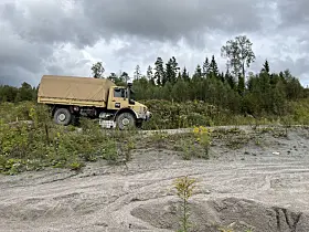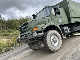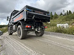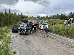 Foruten hovedrolleinnehaveren eActros 600 var også andre velkjente stjerner, som dieseldrevne Actros og Arocs, og slektningene Unimog og Zetros, i full sving på Rudskogen.