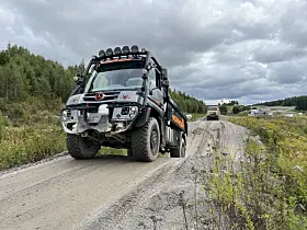 På off road-banen var en 6x6 Zetros hentet inn fra Tyskland, sammen med en Unimog i militærutgave. En traktorregistrert Unimog, som det selges mest av i Norge, var også på plass.