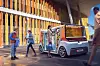 Eller som et rullende pakkelager, der den fylles med online-bestilte varer i en hub og så kjøres ut til et område med mange mottakere. Hver har egen kode til sin egen lille postboks.