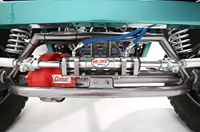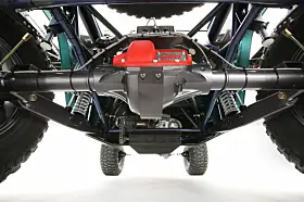 Vanligvis stopper disse på 715 hester, og her ledes de til alle fire hjulene via en tre trinns automat og en Advanced Adapter Atlas transferkasse og videre til Currie diffene i de stive akslene foran og bak.