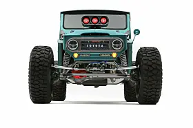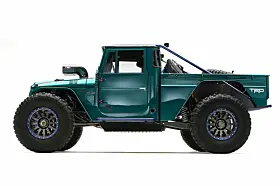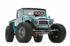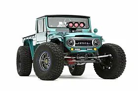 Bygget på en 1966 FJ45 pickup er den blitt til et beist som ser ut som den tygger granitt og spytter den ut igjen som smågrus. En bil som eter opp alt som står i dens vei.