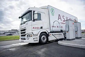 ASKO åpner Norges første ladere for den nye MCS-standarden for hurtiglading på Vestby. Scanias elbiler lader i dag med opptil 375 kW, mens på den nye ladestasjonen kan de nye, tilpassede bilene lade med opptil 700 kW.