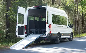 - Fører + 9 passasjerer + en rullestol – med integrert rullestolrampe bakerst.