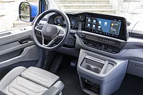 En finesse Ford har i sin Transit Custom, med å kunne forvendle rattet til et vannrett skrivebord, er imidlertid ikke en del av Volkswagens tilbud.