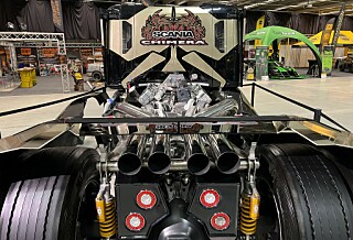 Her sitter en Scania V8 16,4 liter, også denne tegnet av Jan Richter og bygget opp av Laxå Special Vehichles.