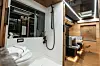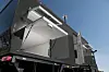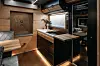 Her kan hele påbygget justeres hydraulisk, slik at det står i water når dere har parkert. Innvendig er det hele ganske logisk med et nesten helt lukket soveværelse med god dobbeltseng plassert rett ved siden av badet. Kjøkken og spiseavdeling er også i logisk gangavstand.