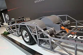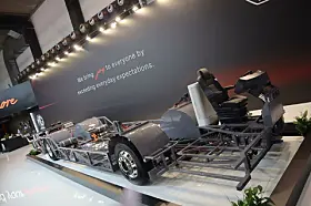 Det var stor avduking, en rekke personer på standen, men nesten ingen detaljer om de to modellene – den ene i chassisform – som ble presentert.
