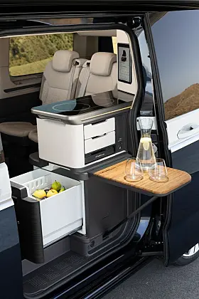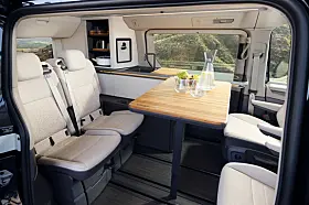 Største endringen fra forrige generasjon er at nye California er utstyrt med to skyvedør i stedet for én. Det utvider mulighetene for å utnytte plassen rundt bilen, blant annet kan du benytte kjøkkenavdelingen som er plassert bak førersetet fra utsiden av bilen.