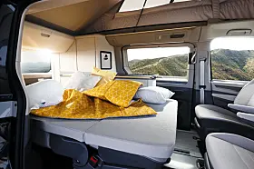 I løpet av minutter konverteres den til en kompakt bobil med takhøyde på nesten to meter takket være et pop-up tak som er hengslet i bakkant og uttrekkbare moduler.