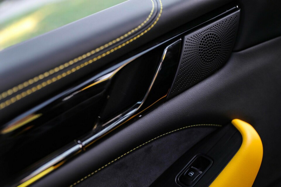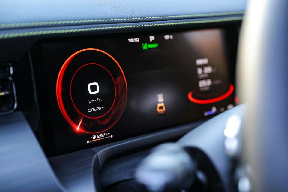 Totalt 300 kW og 750 Nm. 9-trinns girkasse med integrert elmotor som leverer 120 kW. Sperre på alle diffene og Borg Warner hjelper til med intelligent firehjulstrekk.