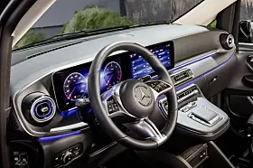 V-klassen blir også ny i fronten, men blir enda mer oppgradert internt med to 12,3-tommers skjermer og MBUX software.