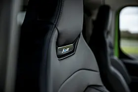Innvendig er nye ergonomiske forseter montert. De skal være trukket i vegansk skinn (er ikke det en selvmotsigelse?) og alcantara, og med MS-RT logoer og blå sømmer. Et sportsratt med blå sømmer er også standard. Varebilen kommer med førersete og to passasjerseter.