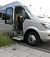 For som jeg skal lære i fabrikkgjennomgangen senere, er det stor teknisk forskjell mellom en Sprinter-buss bygget inn i det eksisterende varebilkarosseri kontra en mer avansert buss. Sistnevnte er i praksis hugget opp i en haug biter og deretter bygget på ny med mange nye biter. Ytterpaneler i fiber for eksempel.
