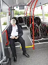 Jojo meg. Den tredje ytterligheten jeg prøver meg på er altså den nesten 9 meter lange lavgulvs-utgaven av Sprinter med boggi. Totalt kan den romme intet mindre enn 40 passasjerer. Da er det også på sin plass med to doble sidedører, for øvrig med vinduer helt ned.