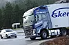 Derfor var det med stor interesse vi takket ja til å kjøre en lengre strekning i Norge med ekte vare. Testbilen er en norskspesifisert, treakslet FH 540 med 18.000 km på telleverket og lastet til 50 tonn. (Bilen har gått i Volvos karavane i høst).