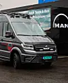 Med seg har de fem biler, fra minste MAN TGE til en skikkelig rugg av en TGS 8x8.