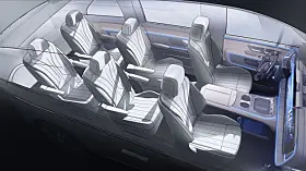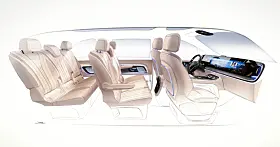 Velger du elektriske seter er konseptet «Remote Variable Rear Space» verdt å merke seg. En slags «seteballett» (Mercedes' eget ord) der man via en app eller skjerm raskt kan konfigurere setene for maksimal benplass eller lastevolum.