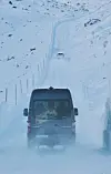 Etter en kjøretur med våt asfalt under hjulene, skifter både omgivelser og underlag karakter etter hvert som vi klatrer oppover i Alpene. Når vi passerer 2000 meter er det skikkelig vinterføre på veien, delvis med både is og fokksnø. Med andre ord tid for å trykke på 4x4-knappen på dashbordet.