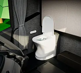 Rullende toalettservice er et nytt innslag på en transportmesse, men det er hva Cinderella Eco Sales AS byr oss. En Scania S650 med henger er utstyrt med et dieseldrevet Cinderella Travel forbrenningstoalett. Opstad Maskin har hatt den i drift mellom Bergen og Molde med gode resultater og har gitt Opstads sjåfører en helt annen hverdag. Folkene bak har mange progressive ideer og er på plass for å diskutere løsninger og muligheter.