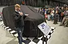 Henning Solberg dro av duken på Ken Blocks egen varebil. Ken Block selv hilste til Oslo Motor Show på video.