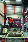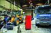 Utenfor garasjeportene øker de blå gradene, samtidig som det er knapt med dagslys på den tiden da YrkesBil er på besøk. Innenfor de to portene en mandag morgen står en hjullaster og en Mercedes lastebil.