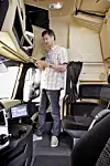 Giga-space er navnet på den største førerhytten. Lounge” er nå begrepet på fritidsdelen av hytta, og med flatt gulv, 2,13 meter takhøyde og 11,6 kubikkmeter volum er det plass til mye. Og erhm – Mercedes-sjefen Hubertus Troska mente altså det nå var plass til 28 kasser øl…