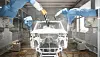 Etter bare 12 uker raget fabrikkveggene mer enn fire meter i været. 28 kraner jobbet non stop. 22 store pumper leverte daglig 5.000 kubikkmeter betong.