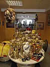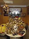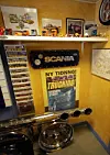Hundrevis av pokaler, bilder, plakater, en tarantella på boks («det var en gave»), pistoler, ammunisjon, en chopper («hojen har jeg ikke kjørt en gang, vi bygde den for noen år siden, så ble den bare stående der»), miniatyrbiler og flere par høyhælte damesko med Scania-merker på. For å nevne noe.