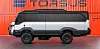 Inntil 35 seter, pluss bagasje, kunne man få plass til på grunnkonstruksjonen, som har nesten 40 centimeter bakkeklaring og kjører på enorme off road dekk fra Michelin.