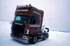 Til da hadde vi altså sett på et 20-talls flunkende nye, svært moderne, avanserte lastebilkonstruksjoner. En virkelig imponerende flåte. Så kommer det en 164 L med 480 hester – står det på merkene foran. Registrert første gang i juli 2001.