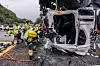 Det blir ikke mye igjen av prototype-hyttene fra Scania etter at brannvesenet i Ålesund har brukt dem til å trene på tungbil-redningsaksjoner.