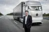 IAA LASTEBIL: Den er kjørbar i dag. Lastebilsjefen i Daimler, Wolfgang Bernard, ble personlig kjørt inn av den på pressekonferansen i kveld. Bilen som kan dominere året 2025.
